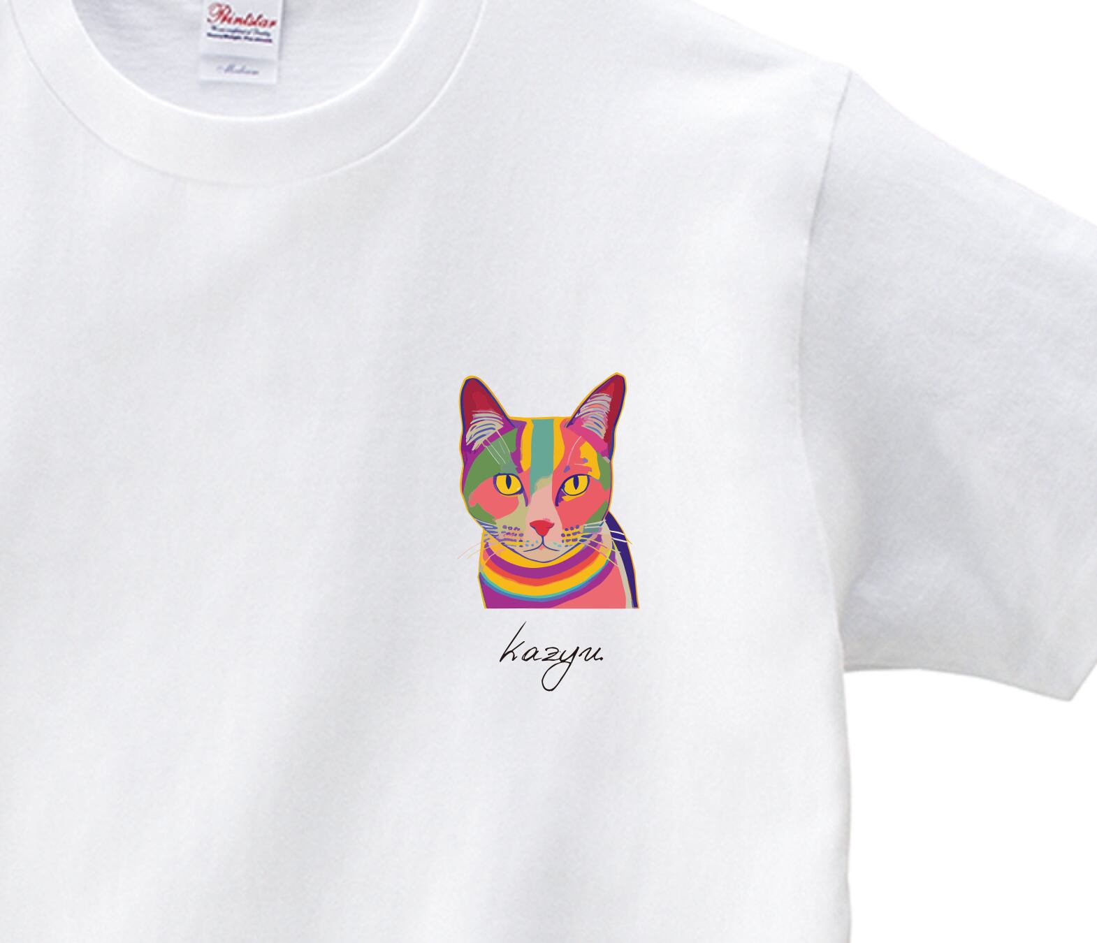 胸にねこのプリントをあしらった半袖Tシャツです。